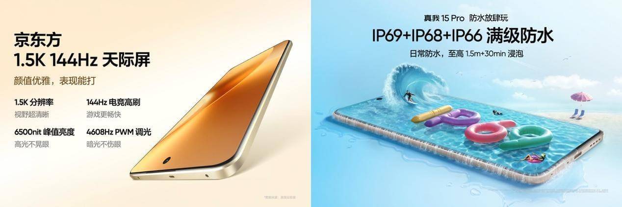 l 直屏影像神器——线Hz电竞直屏,配备真我数字系列首个独显电竞双芯。同时配备前后5000万超清拍照、7000mAh泰坦电池和IP69满级防水,首销价1699元起。