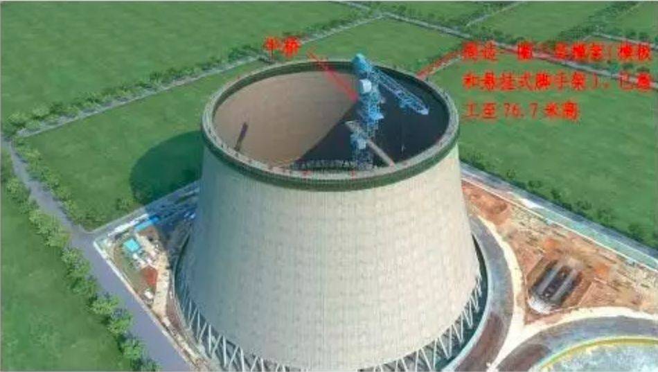 7号冷却塔于2016年4月11日开工建设,4月12日开始基础土方开挖,8月18日完成环形基础浇筑,9月27日开始筒壁混凝土浇筑,事故发生时,已浇筑完成第52节筒壁混凝土,高度为76.7米。